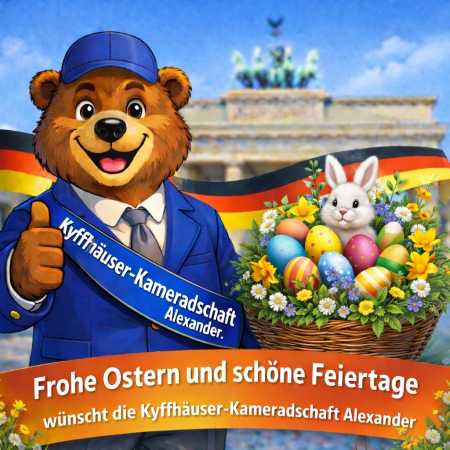 Die Kyffhäuser-Kameradschaft Alexander wünscht allen Kameradinnen und Kameraden, Freunden und Unterstützern ein gesundes neues Jahr, viel Glück und Erfolg in 2026!